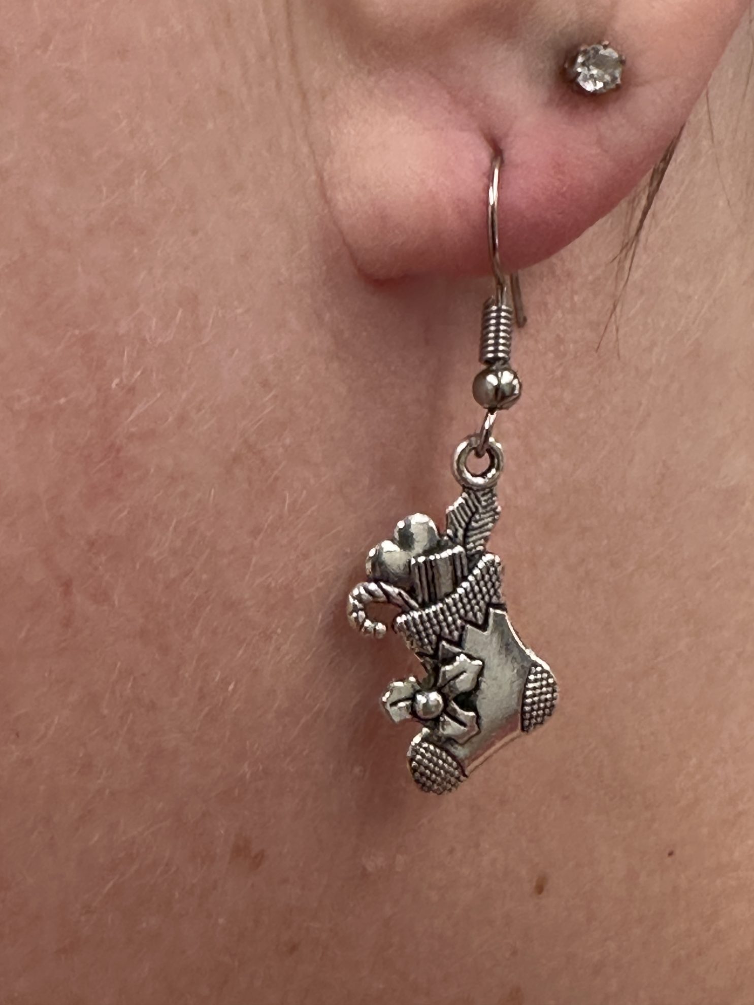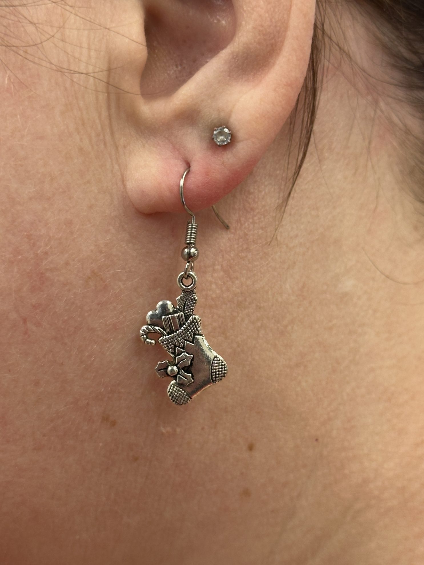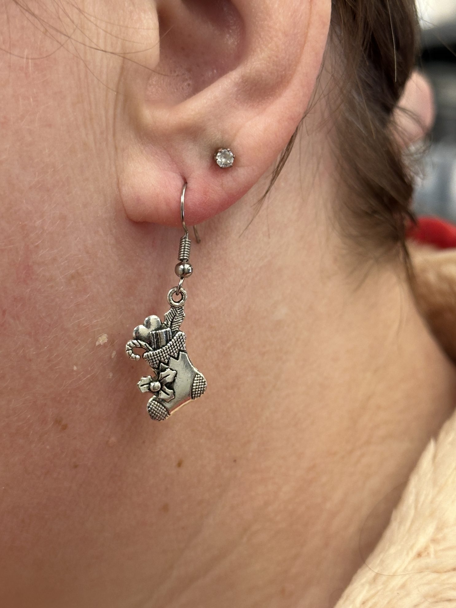 Breng de kerstsfeer tot leven met deze vrolijke oorbellen in de vorm van een kerstlaars vol cadeautjes. De gedetailleerde hanger met candy cane, geschenken en hulstblaadje maakt dit sieraad een echte eyecatcher tijdens de feestdagen.
